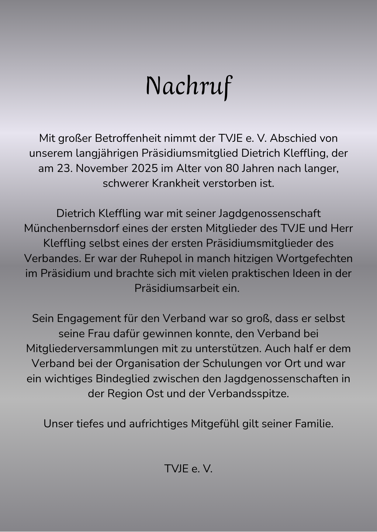 Der Thüringer Verband der Jagdgenossenschaften und Eigenjagdbezirkinhaber e.V. (TVJE) hat im September einen Wechsel an der Verbandsspitze vollzogen… weiterlesen
